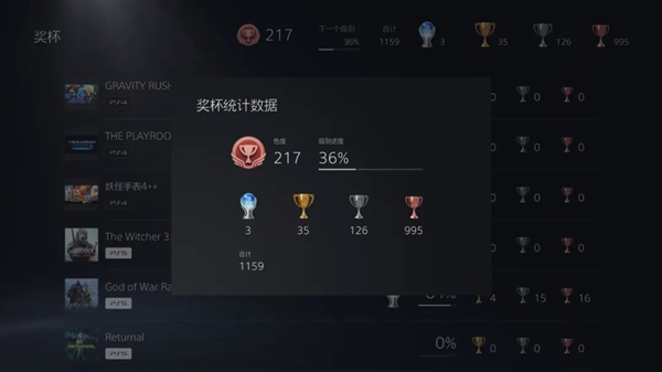 而且,总共游戏的奖杯数目,索尼还会帮你统计在一齐。