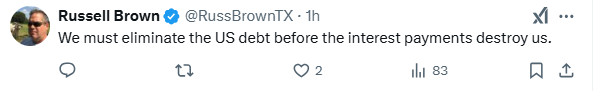 “咱们必须在债务利息支付松手咱们之前摈斥好意思国的债务。”